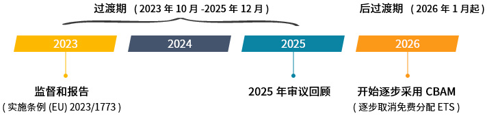 | 2026年1月1日(实施期) | 企业需要报告每年进口产品的碳排放数据,还需缴纳对应的碳排放费用。碳排放免费额度将会逐年减少,与EU-ETS免费额度逐步取消的速度一致。 |